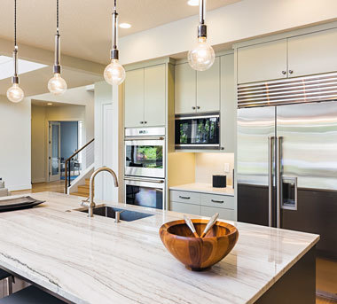 Quartz, not granite. Manufactured quartz is the leading countertop material, according to the National Kitchen and Bath Association. Quartz is tougher, easier to maintain, offers numerous colors and patterns, mimics the high-end look of granite, and it’s more earth-friendly.