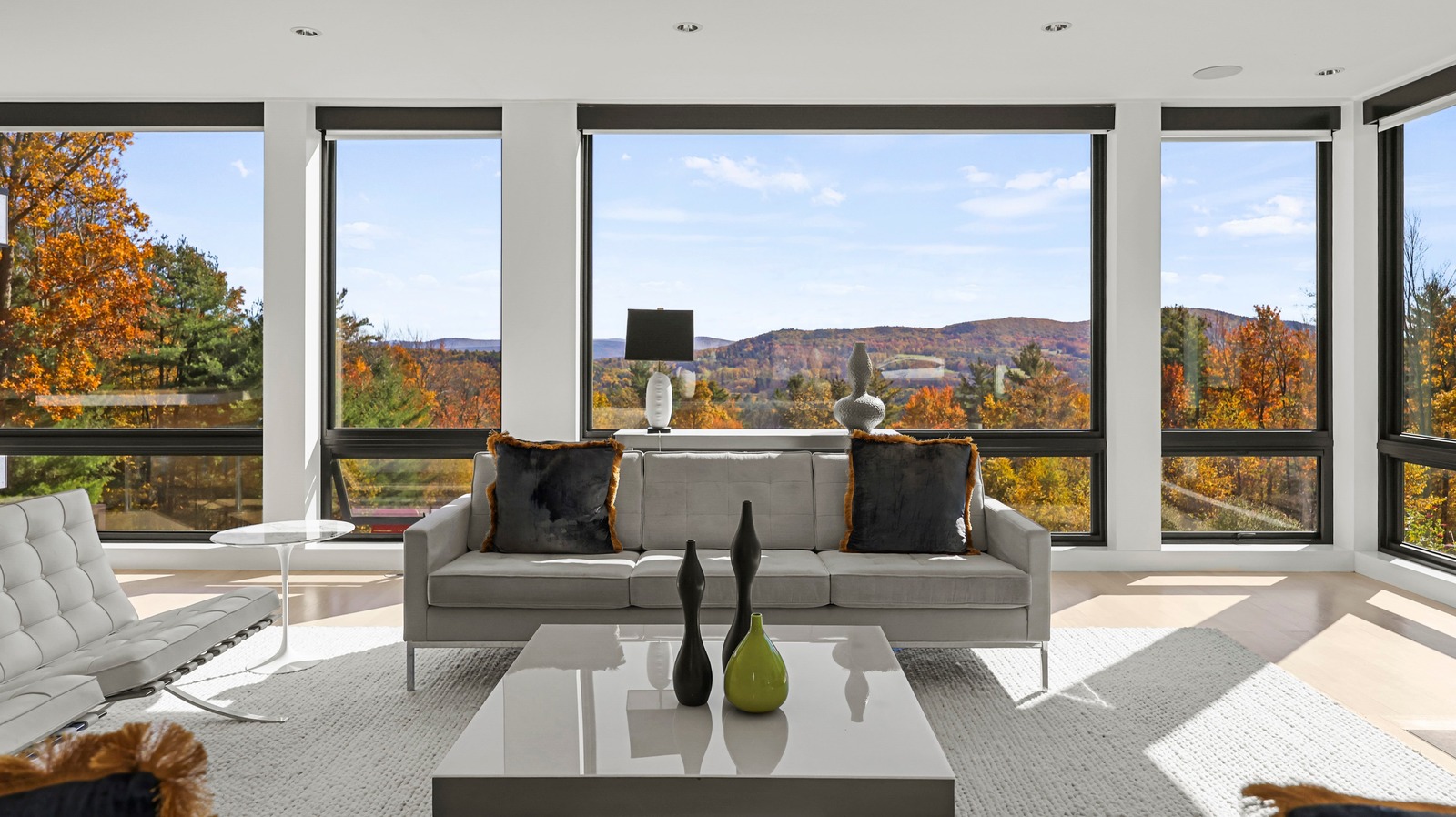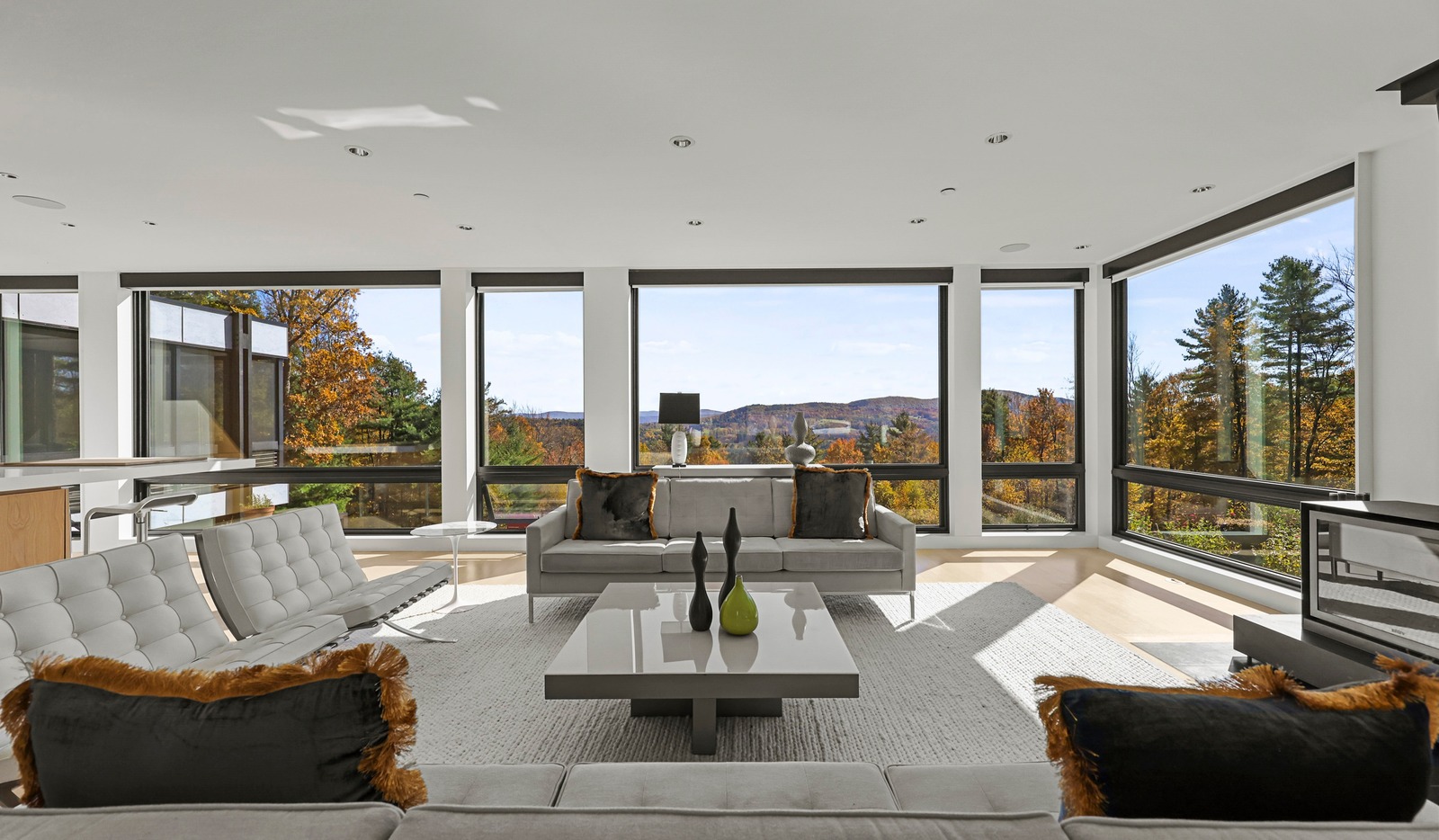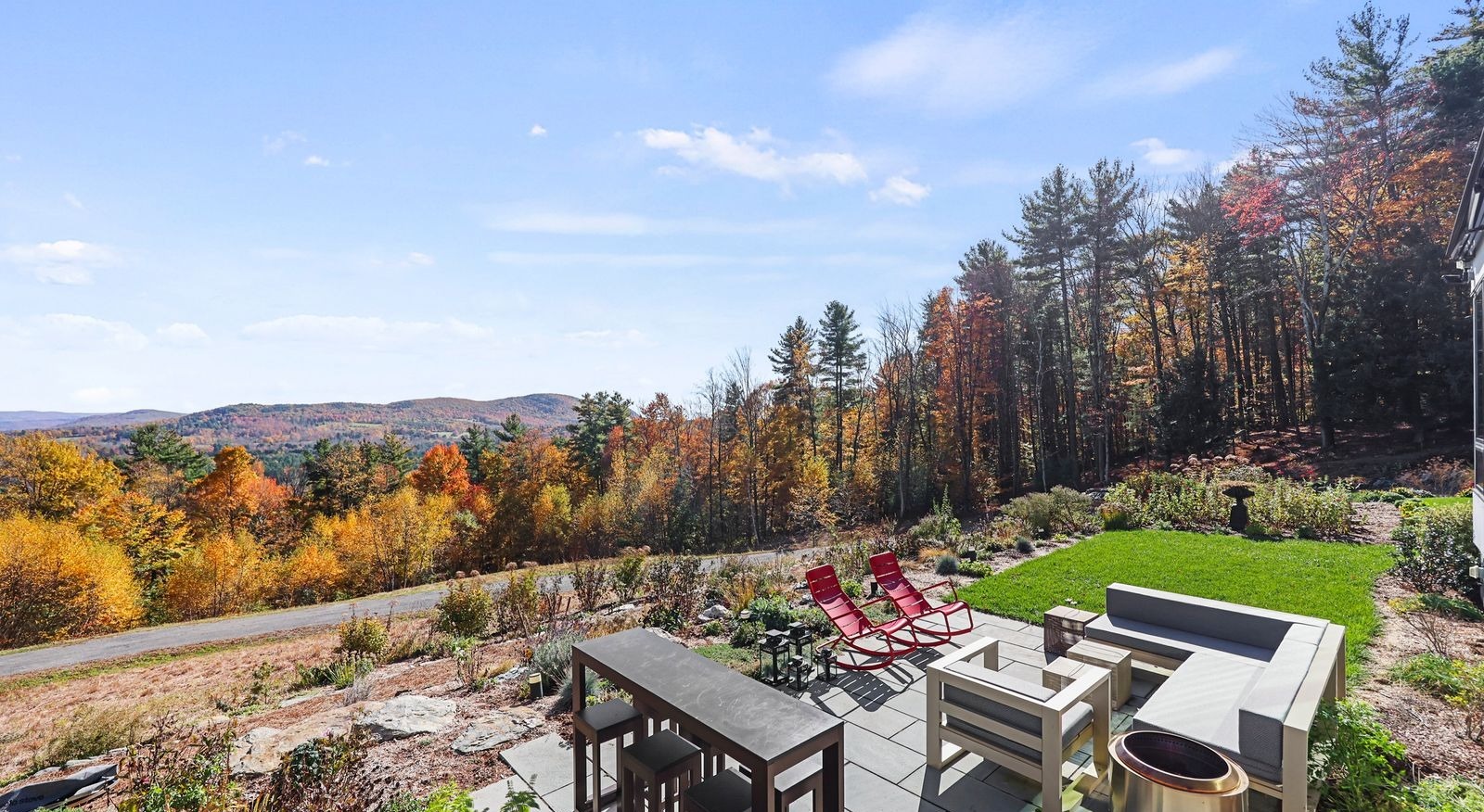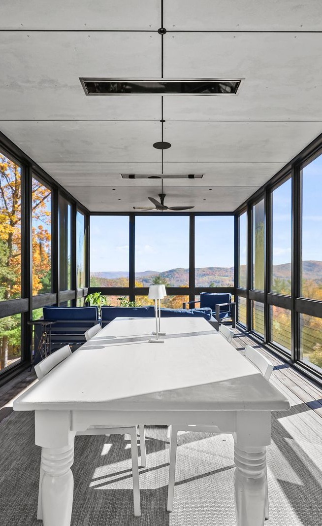 Framed by sweeping walls of glass, nature itself becomes part of the design in this single-level modernist retreat. The seamless indoor-outdoor flow invites you to take in mountain views from every angle. Refined simplicity and privacy define the space, with sleek lines, a cohesive palette, and high-end finishes creating effortless sophistication.Created by the award-winning firm Res4 Architecture, this modern masterpiece exemplifies precision and innovation. The open living area centers on a chef's kitchen with Gaggenau and SubZero appliances, bespoke cabinetry, and a striking Stuv fireplace. A luxurious media suite offers an immersive theater experience with a retractable screen and surround sound — perfect for entertaining or quiet nights in. A flex room, an en-suite primary with dressing room, plus two en-suite guest suites which include custom Murphy Beds for easy transformation into home offices. An interior courtyard with a Wolf outdoor kitchen, a six-person sauna, a butler's pantry and a heated screened-in porch complete the thoughtful layout .Step outside into nature: meadows of wildflowers and native grasses connect directly to the trails of Harvey Mountain State Forest — thousands of protected acres beyond your door.