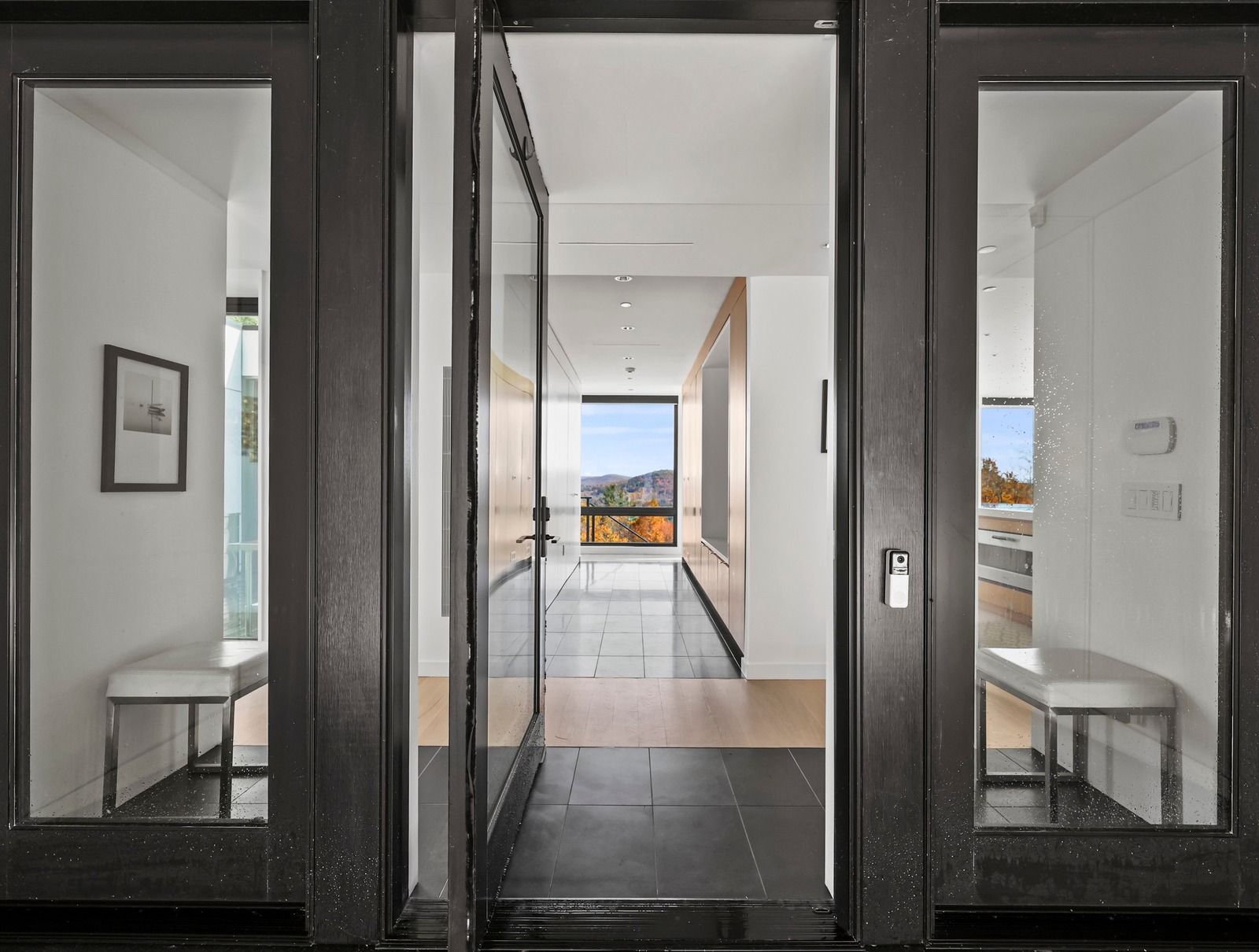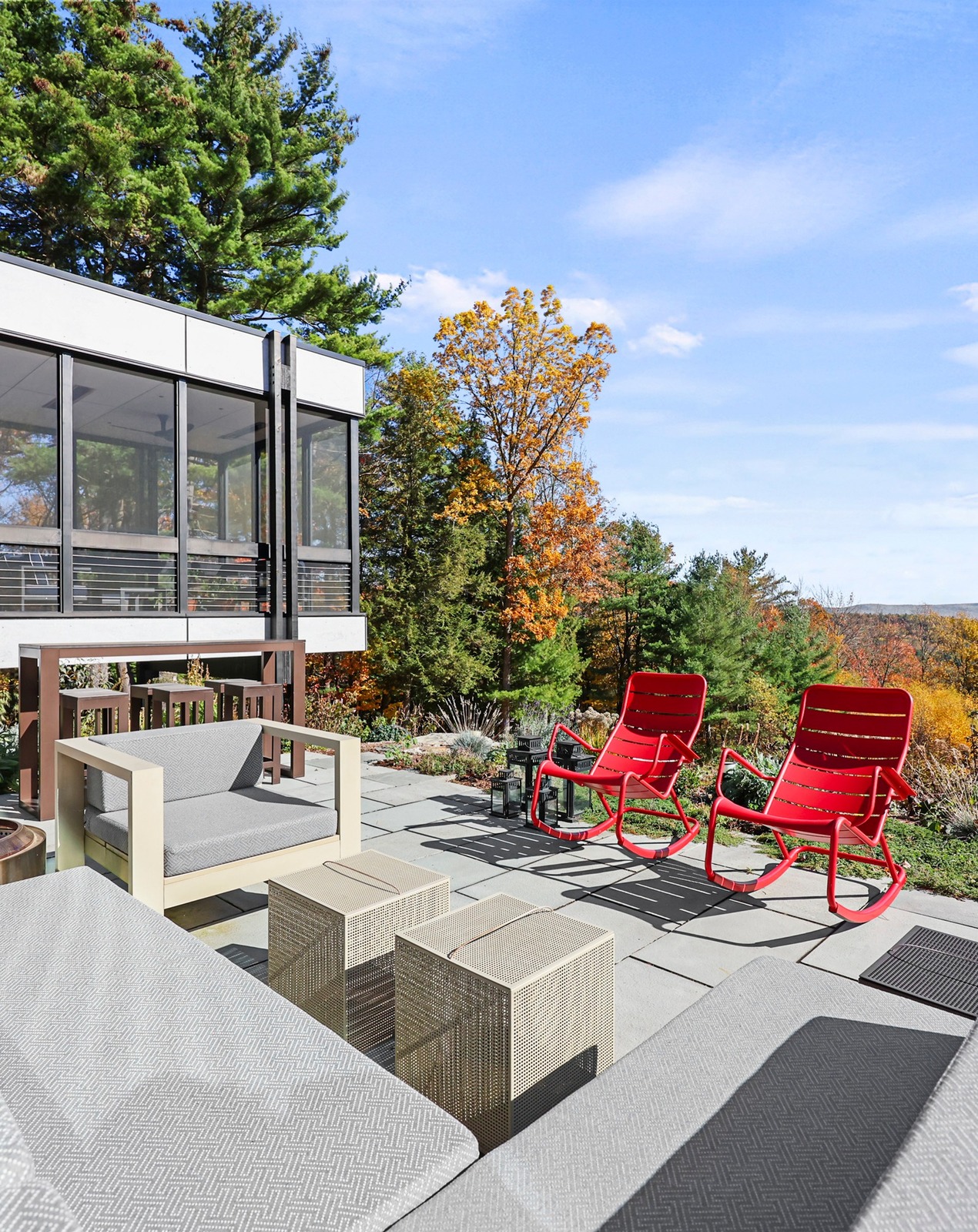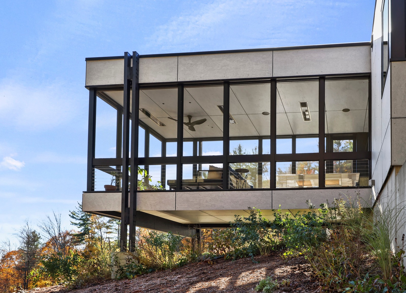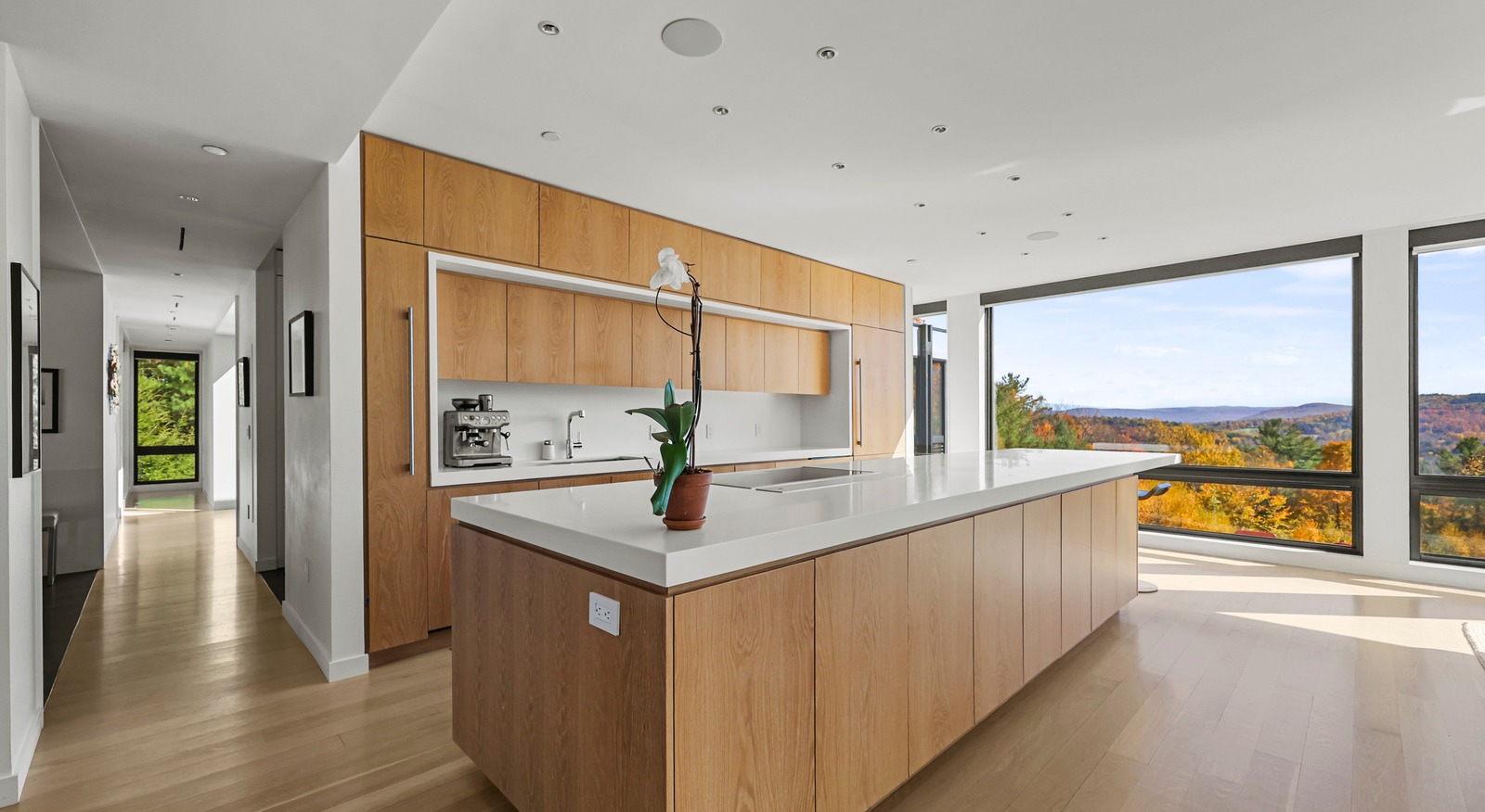 Framed by sweeping walls of glass, nature itself becomes part of the design in this single-level modernist retreat. The seamless indoor-outdoor flow invites you to take in mountain views from every angle. Refined simplicity and privacy define the space, with sleek lines, a cohesive palette, and high-end finishes creating effortless sophistication.Created by the award-winning firm Res4 Architecture, this modern masterpiece exemplifies precision and innovation. The open living area centers on a chef's kitchen with Gaggenau and SubZero appliances, bespoke cabinetry, and a striking Stuv fireplace. A luxurious media suite offers an immersive theater experience with a retractable screen and surround sound — perfect for entertaining or quiet nights in. A flex room, an en-suite primary with dressing room, plus two en-suite guest suites which include custom Murphy Beds for easy transformation into home offices. An interior courtyard with a Wolf outdoor kitchen, a six-person sauna, a butler's pantry and a heated screened-in porch complete the thoughtful layout .Step outside into nature: meadows of wildflowers and native grasses connect directly to the trails of Harvey Mountain State Forest — thousands of protected acres beyond your door.