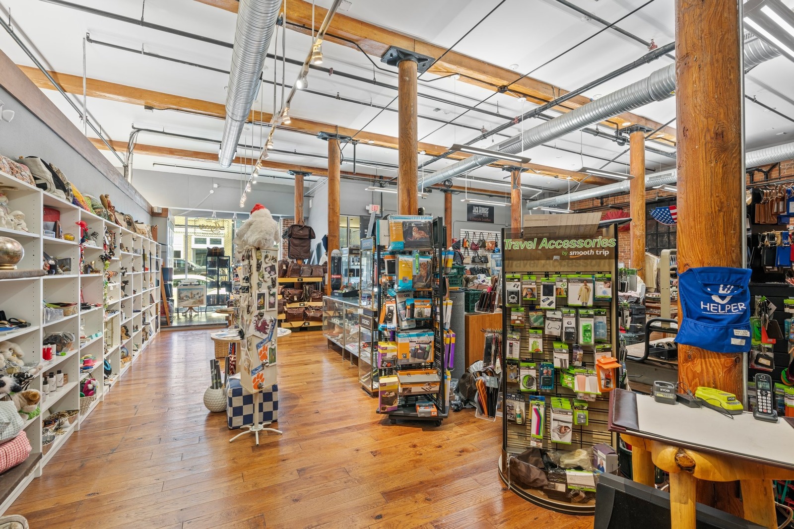 exposed brick walls and wood beams